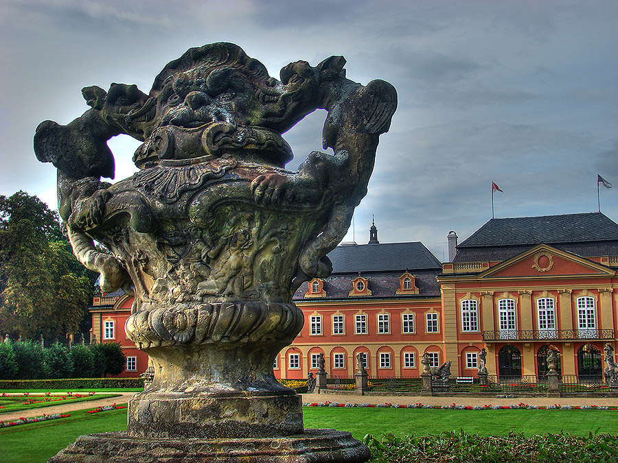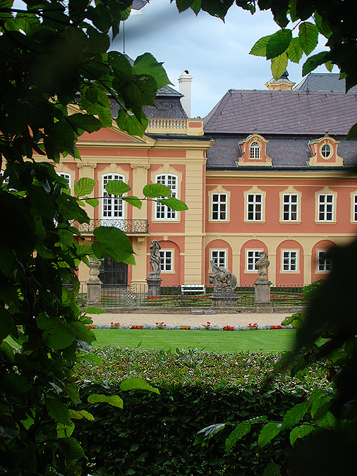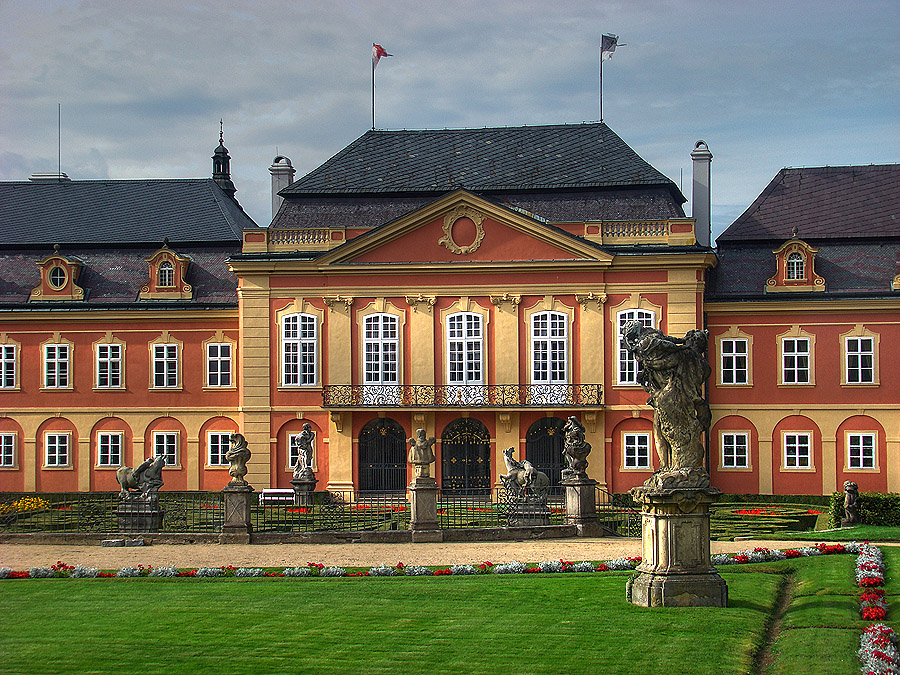 zámek Dobříš francouzská zahrada socha v zahradě zámek Dobříš z jižní strany