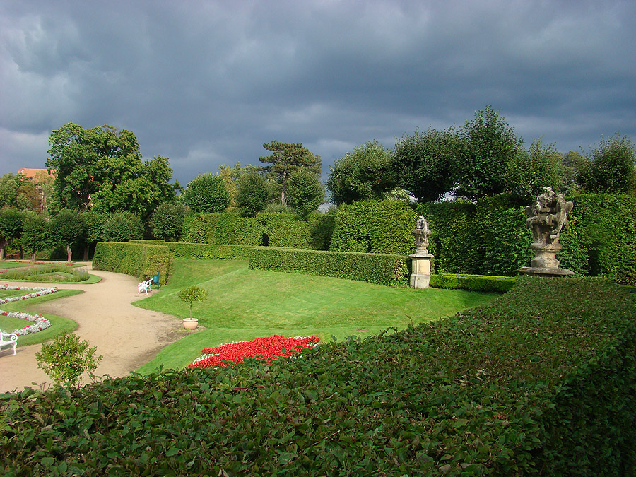 bludiště na kraji francouzské zahrady fontánka u zámku Dobříš francouzská zahrada