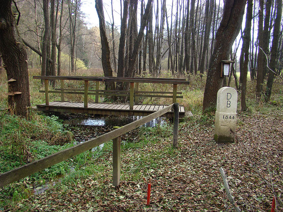 trojmezí - areál na české straně hraniční kámen I/1 na Bavorské straně pravého ramene potoka Rokytnice lávka přes pravé rameno potoka Rokytnice