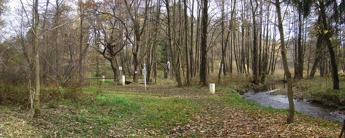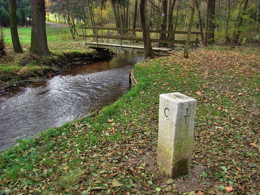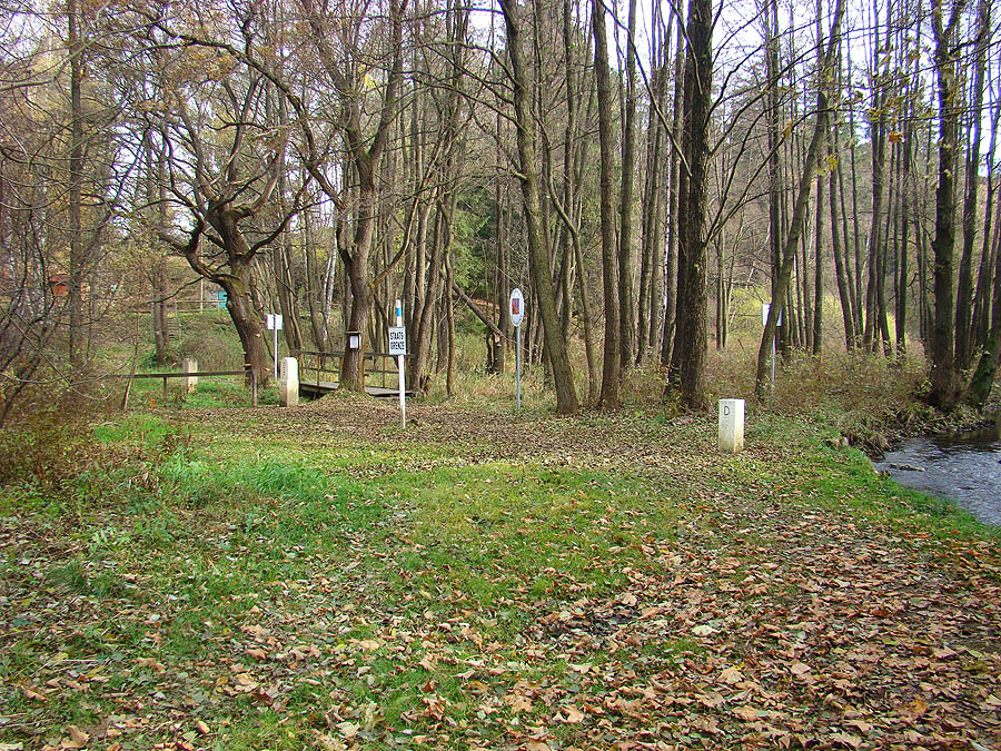 areál trojmezí česko-německý hraniční kámen 1/1 na břehu Rokytnice německý most přes potok Rykytnice
