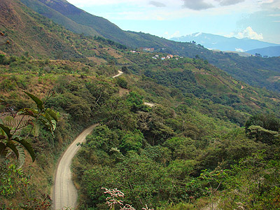 Ovšem co by to bylo za zážitek, kdybychom se nesvezli po staré původní šotolinové cestě a tak z nové asfaltky brzy odbočujeme. Je k neuvěření, že tato polňačka byla ještě donedávna hlavní dopravní tepnou spojující La Paz s nížinou oblastí Yungas!