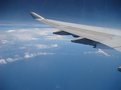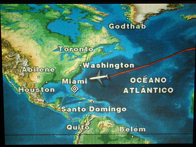 1.7.2010 - Po úvodním přískoku z Vídně do Paříže se společností Austrian (Airbus A321) jsme téměř v pravé poledne vyrazili za Atlantik. Právě se nacházíme 10km nad oceánem v letadle Boeing 747-400 společnosti Air France.