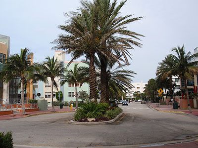 15the Street - tudy vede nejkratší cesta na pláž, kterou máme momentálně za zády. Vzadu na konci 15th Street za semaforem je Collins Avenue a na ní cca 100m vpravo náš hotel.